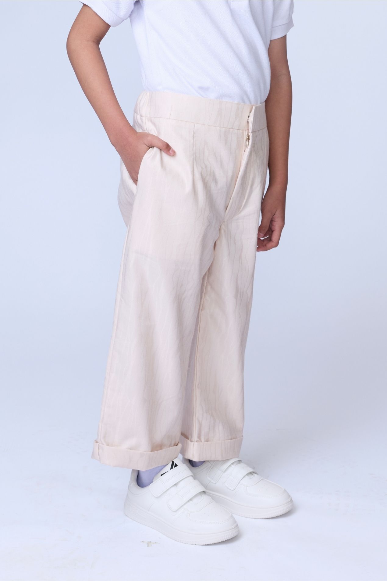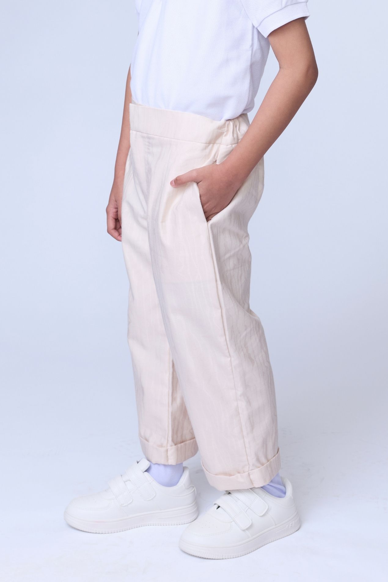 Introducing our newest kidswear drop, relaxed pants designed for everyday comfort. Featuring an adjustable elastic waistband with buttonhole detailing, a loose silhouette for a refined yet comfortable look, and a versatile, timeless design and color. Made with a special jacquard motif for Raya 2026, inspired by the many layers that make us human and celebrating the uniqueness of every self.