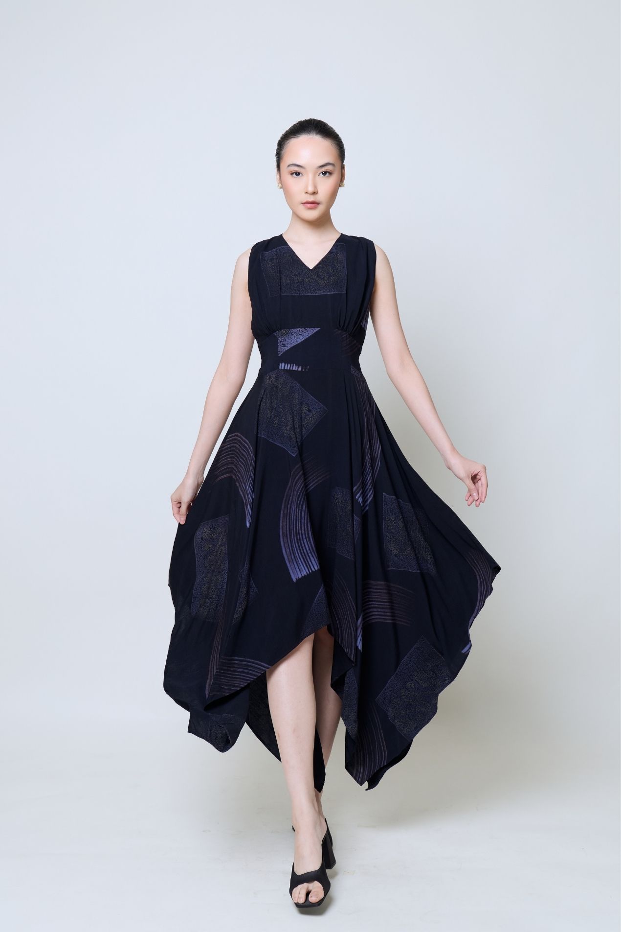 The high-low cut and sleeveless silhouette let this dress move as gracefully as you do. Effortlessly simple yet full of character, it’s the kind of piece you’ll reach for when dressing up needs to feel easy. Perfect for semi-formal look, celebations, or that calls for a one-piece statement. Comes with an adjustable waist tie for a flattering fit. Exclusively for Poean 2.0, this Rayon fabric features a handcrafted batik technique from Pekalongan, merging stamped and brushed artistry. A refined expression of balance, craftsmanship, and heritage for modern everyday wear.