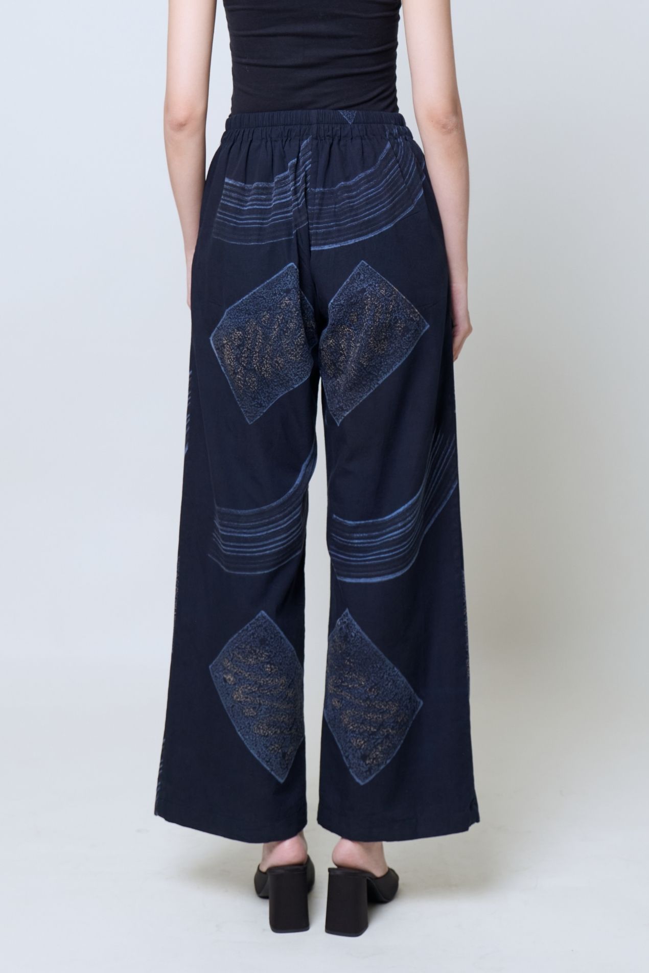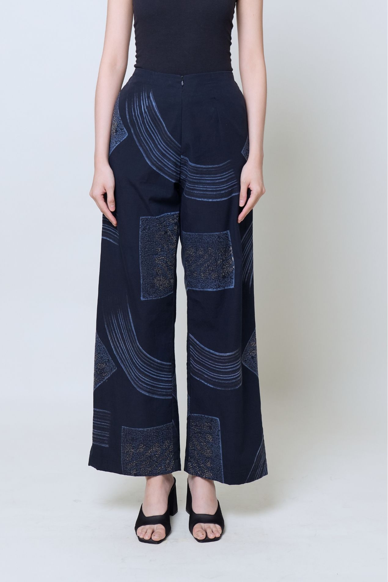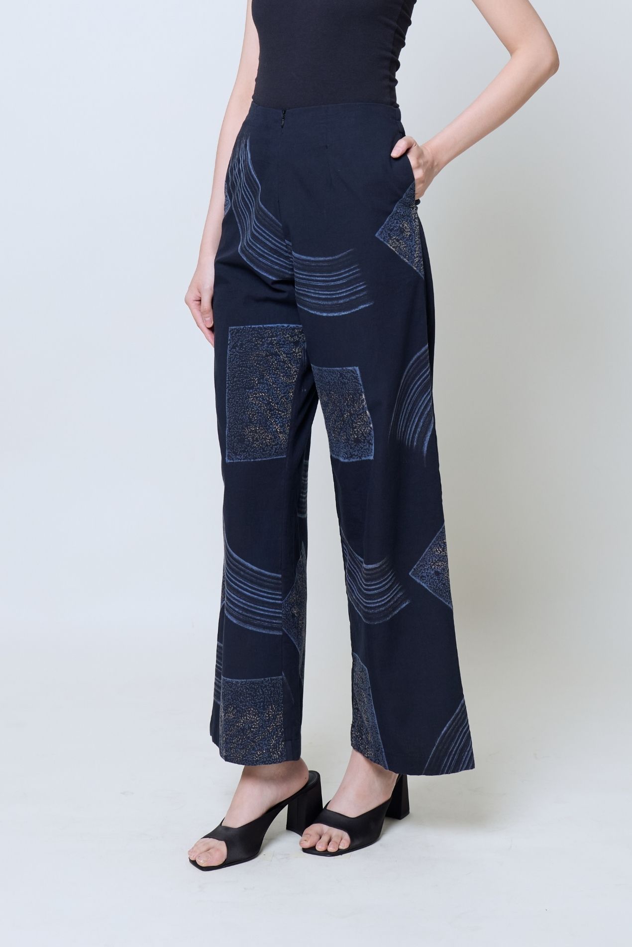 Black Clay Slit Batik Pants bring together straight-fit comfort and a refined, easy-going look. The smooth zipper keeps it practical for daily wear, while the batik motif adds a polished touch. Perfect for slow days at home or casual strolls around town, these pants deliver effortless style in any moment. Exclusively for Poean 2.0, this fabric features a handcrafted batik technique from Pekalongan, merging stamped and brushed artistry. A refined expression of balance, craftsmanship, and heritage for modern everyday wear.