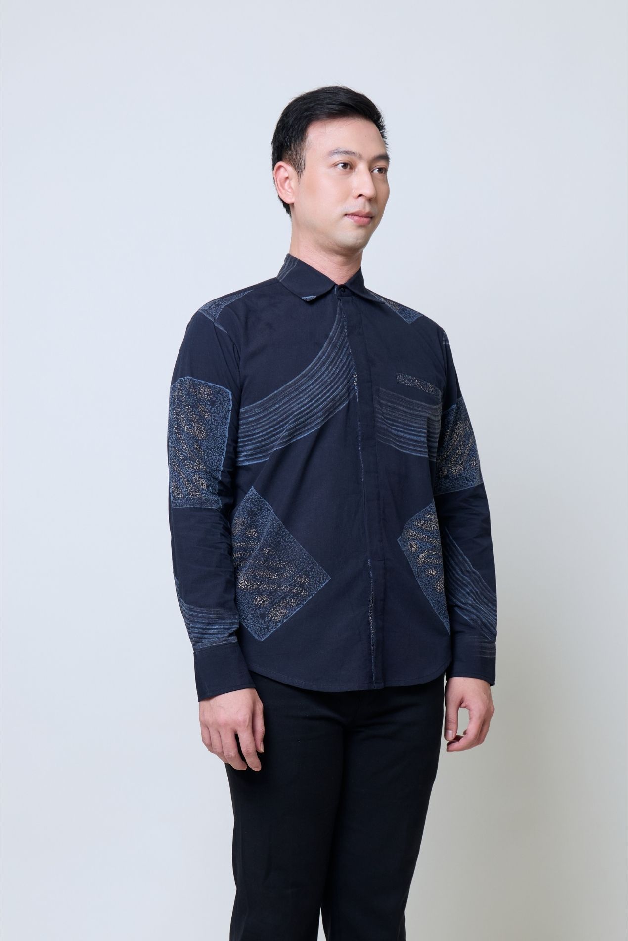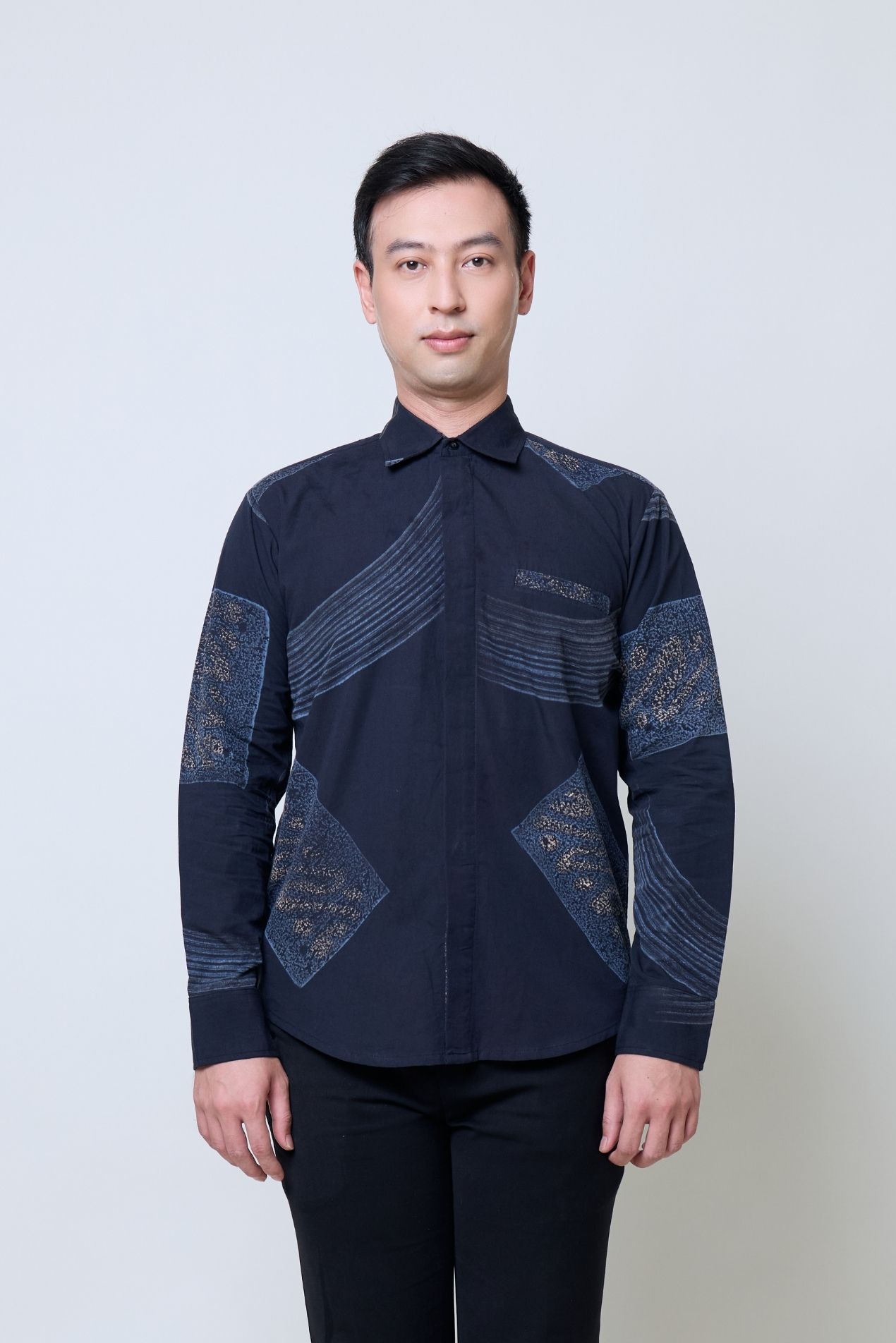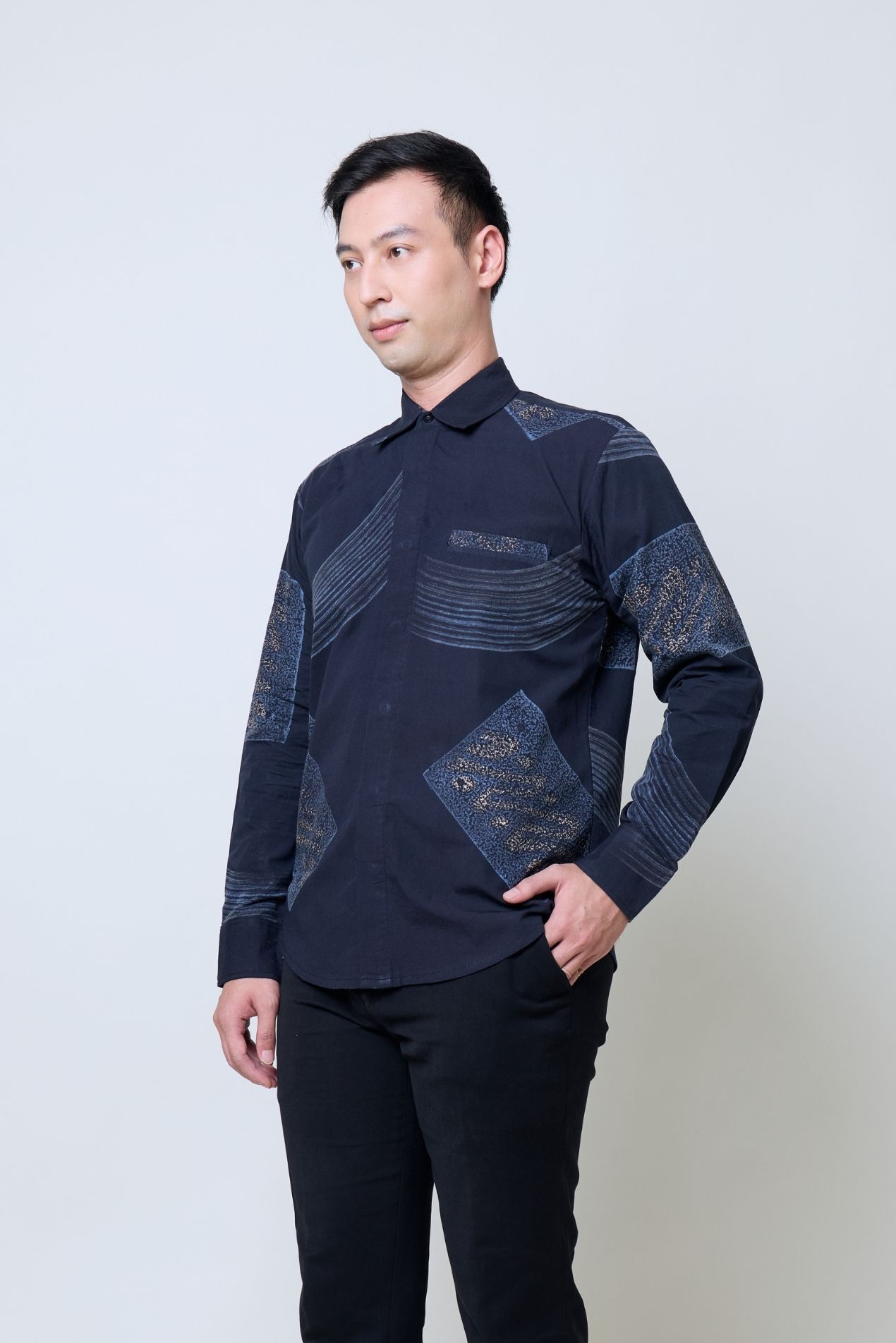 A regular-fit shirt that works just as well worn tucked in or styled open as an outer layer. Its clean cut makes it a versatile pick for office days, while the airy feel pairs effortlessly with linen trousers for a breezy holiday look. Exclusively for Poean 2.0, this fabric features a handcrafted batik technique from Pekalongan, merging stamped and brushed artistry. A refined expression of balance, craftsmanship, and heritage for modern everyday wear.