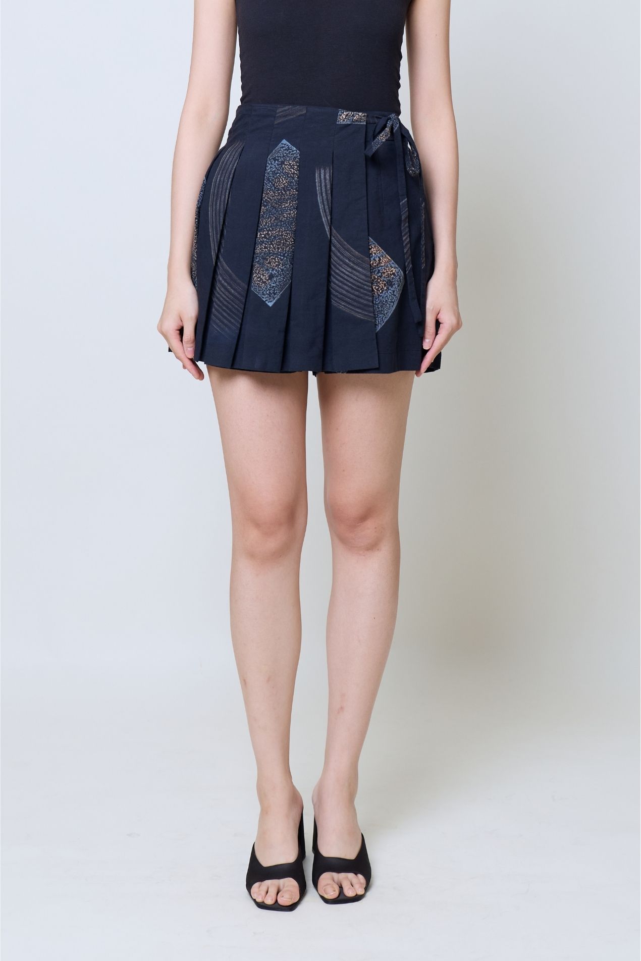 This practical yet charming skort combines the ease of shorts with the look of a skirt. Designed with built-in shorts beneath an apron-style skirt and a convenient side pocket, it comes with wider pleats that add a playful twist to the silhouette. Exclusively for Poean 2.0, this fabric features a handcrafted batik technique from Pekalongan, merging stamped and brushed artistry. A refined expression of balance, craftsmanship, and heritage for modern everyday wear.