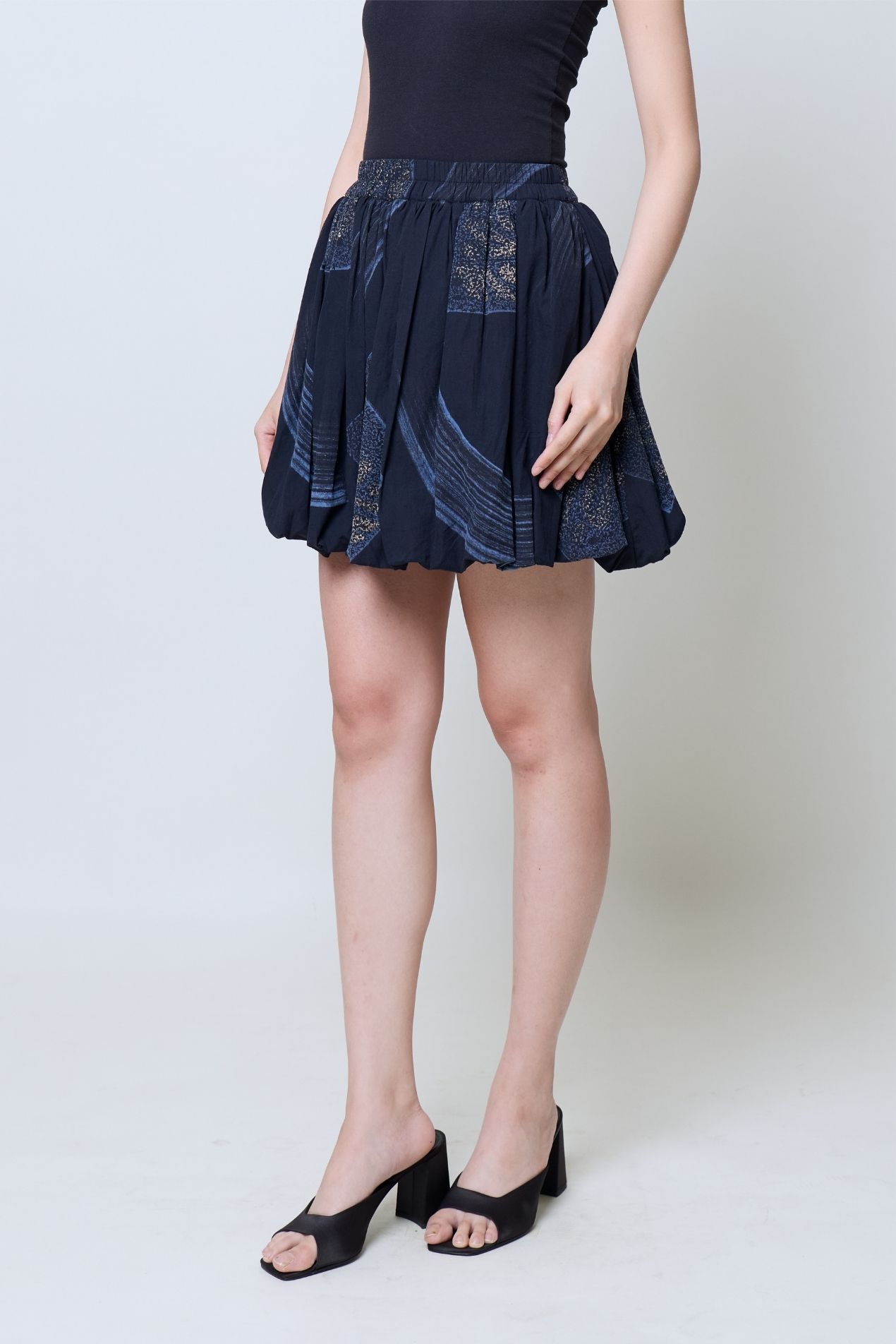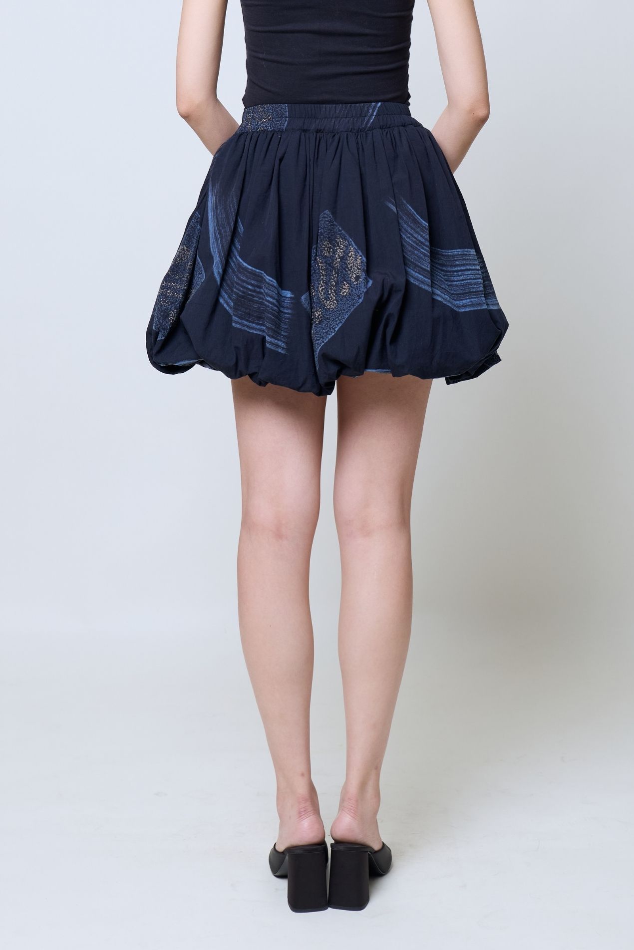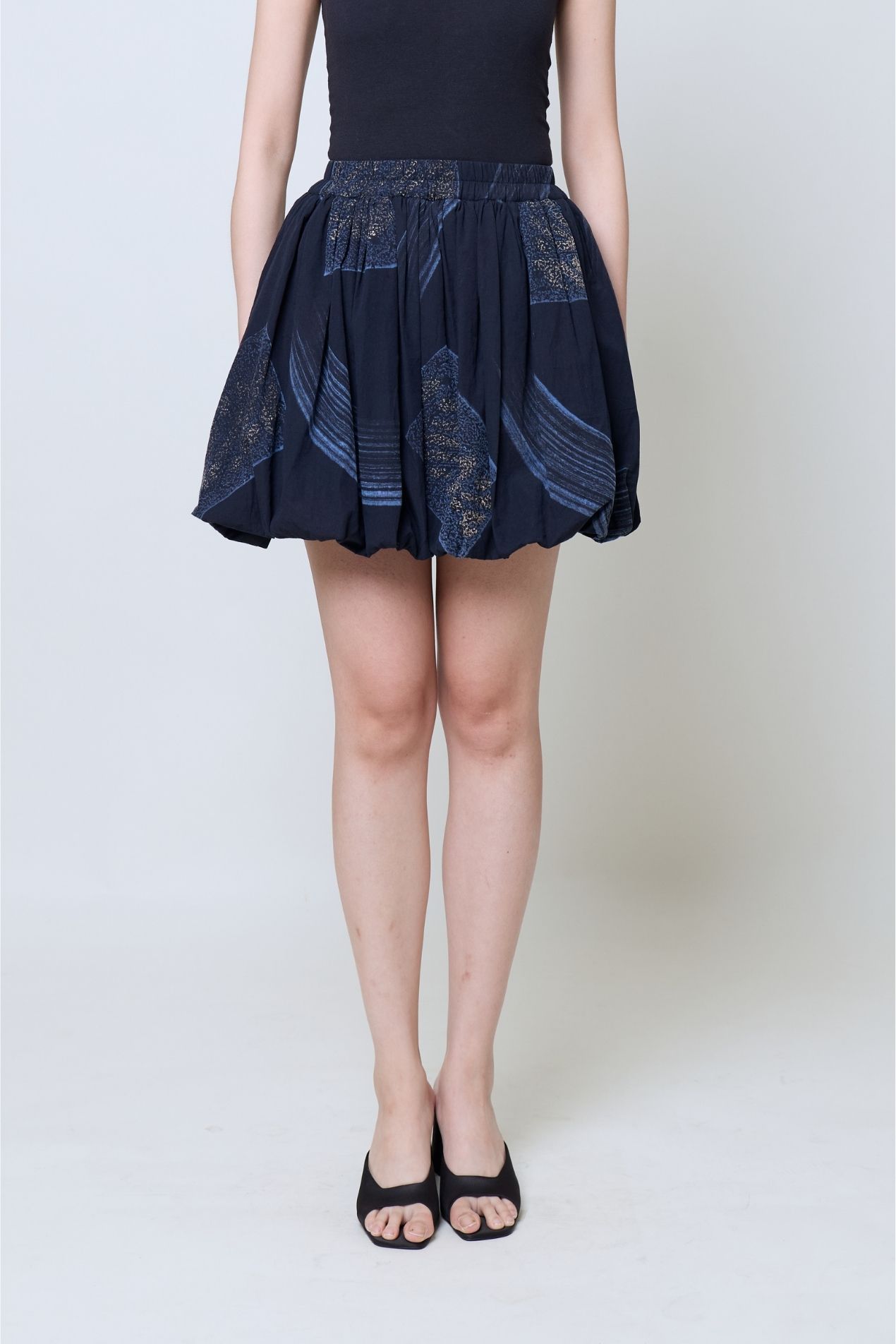 Balloon skirt with a voluminous, structured silhouette. Designed to create a flattering, well-balanced rounded shape when worn. Features an elastic waistband for comfort and flexibility. The gathered hem forms a defined rounded shape that enhances the balloon effect. A statement piece that remains comfortable for both everyday and elevated styling. Exclusively for Poean 2.0, this fabric features a handcrafted batik technique from Pekalongan, merging stamped and brushed artistry. A refined expression of balance, craftsmanship, and heritage for modern everyday wear.