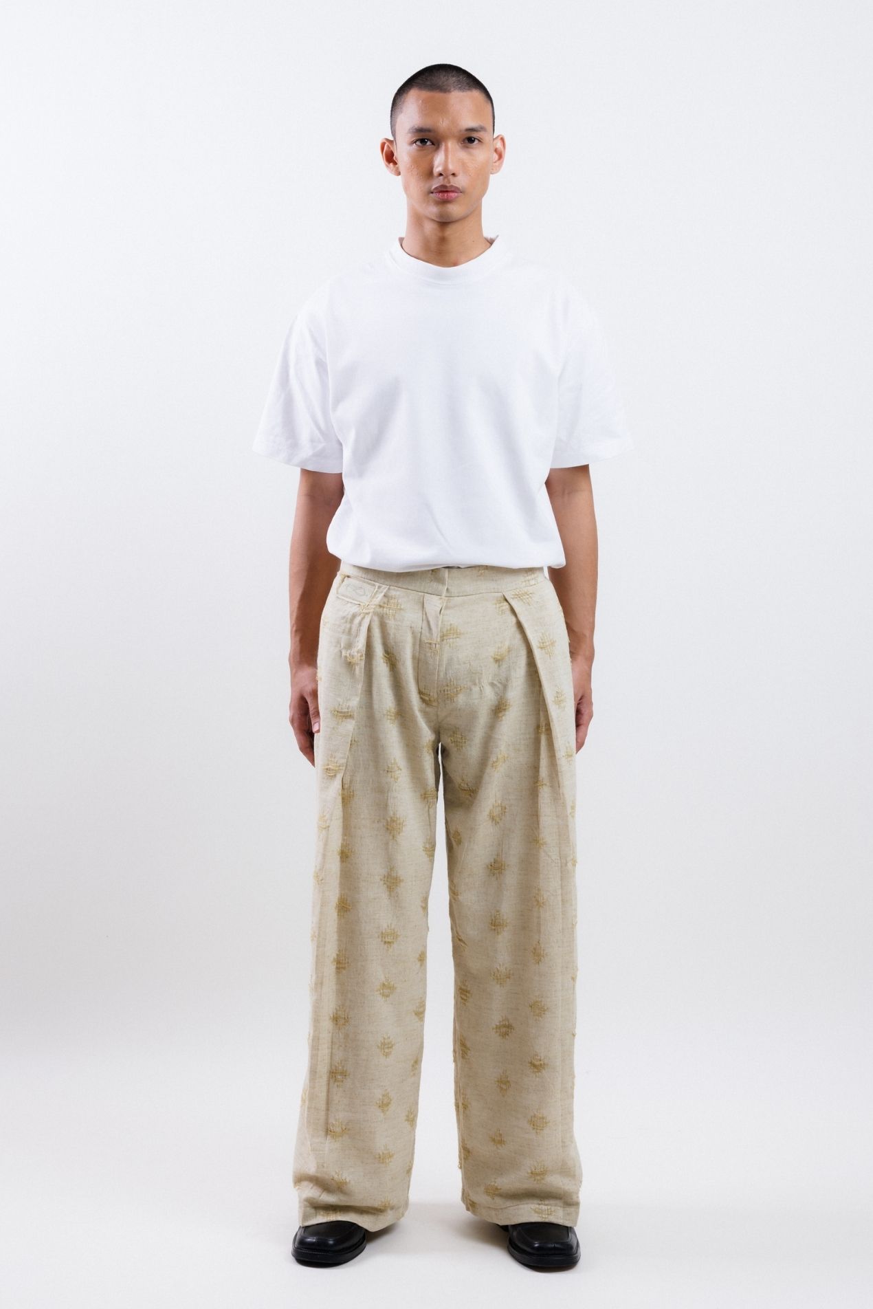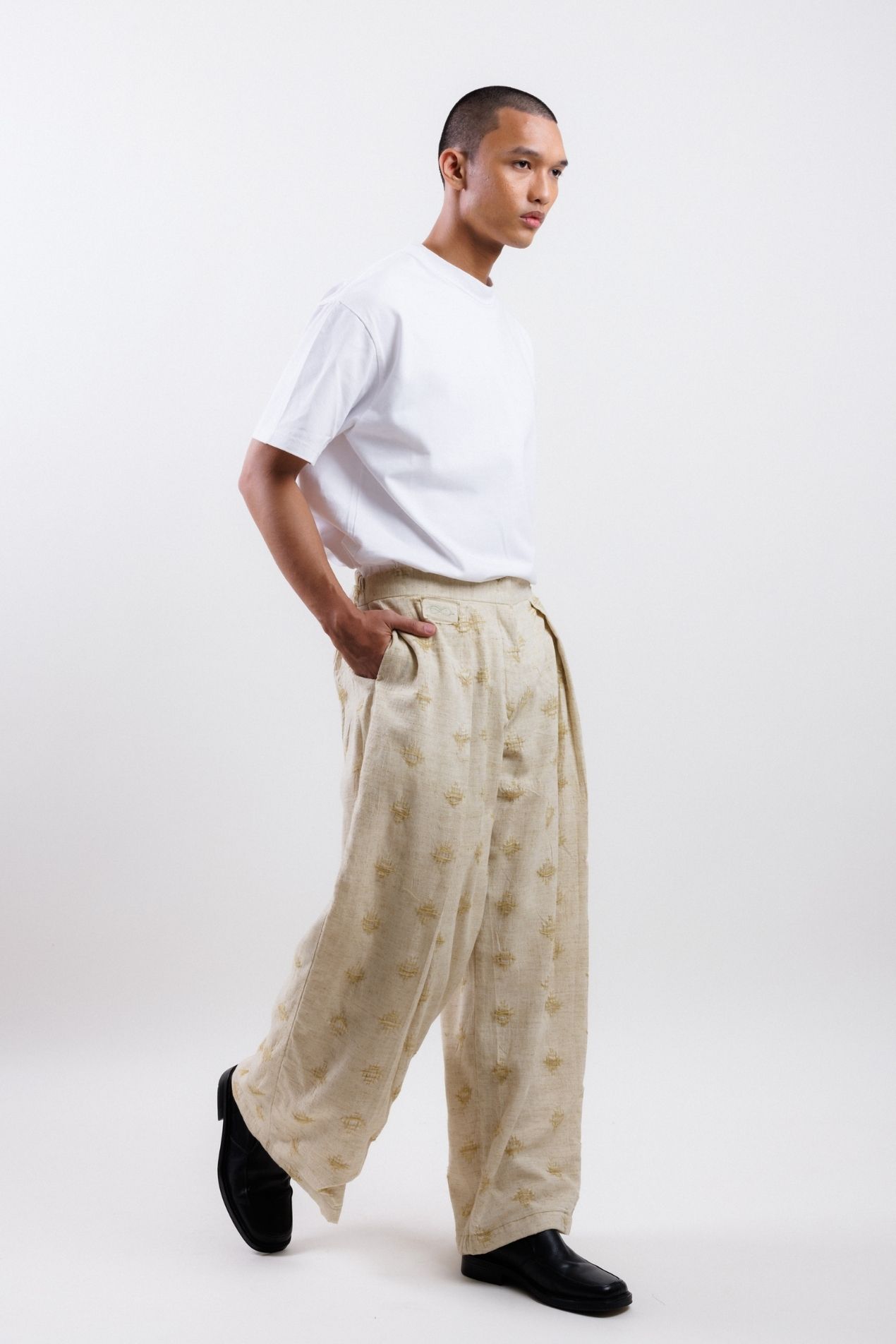 Unisex straight-leg wide pants made with the finest Tenun Tarum Bali, featuring side pockets and a zipper opening for a versatile and comfortable fit.