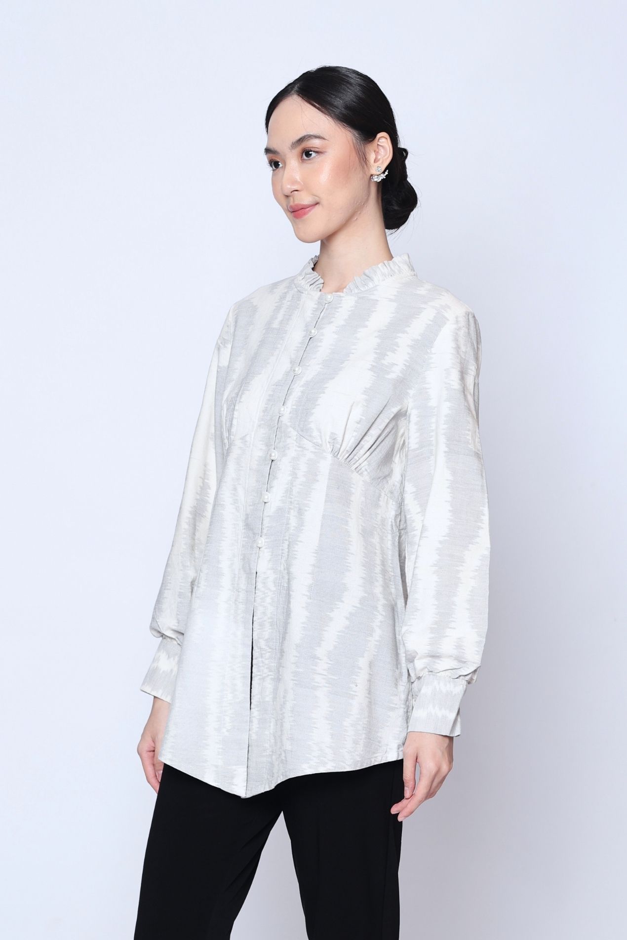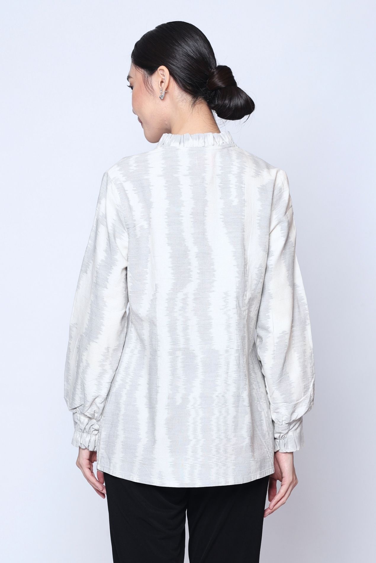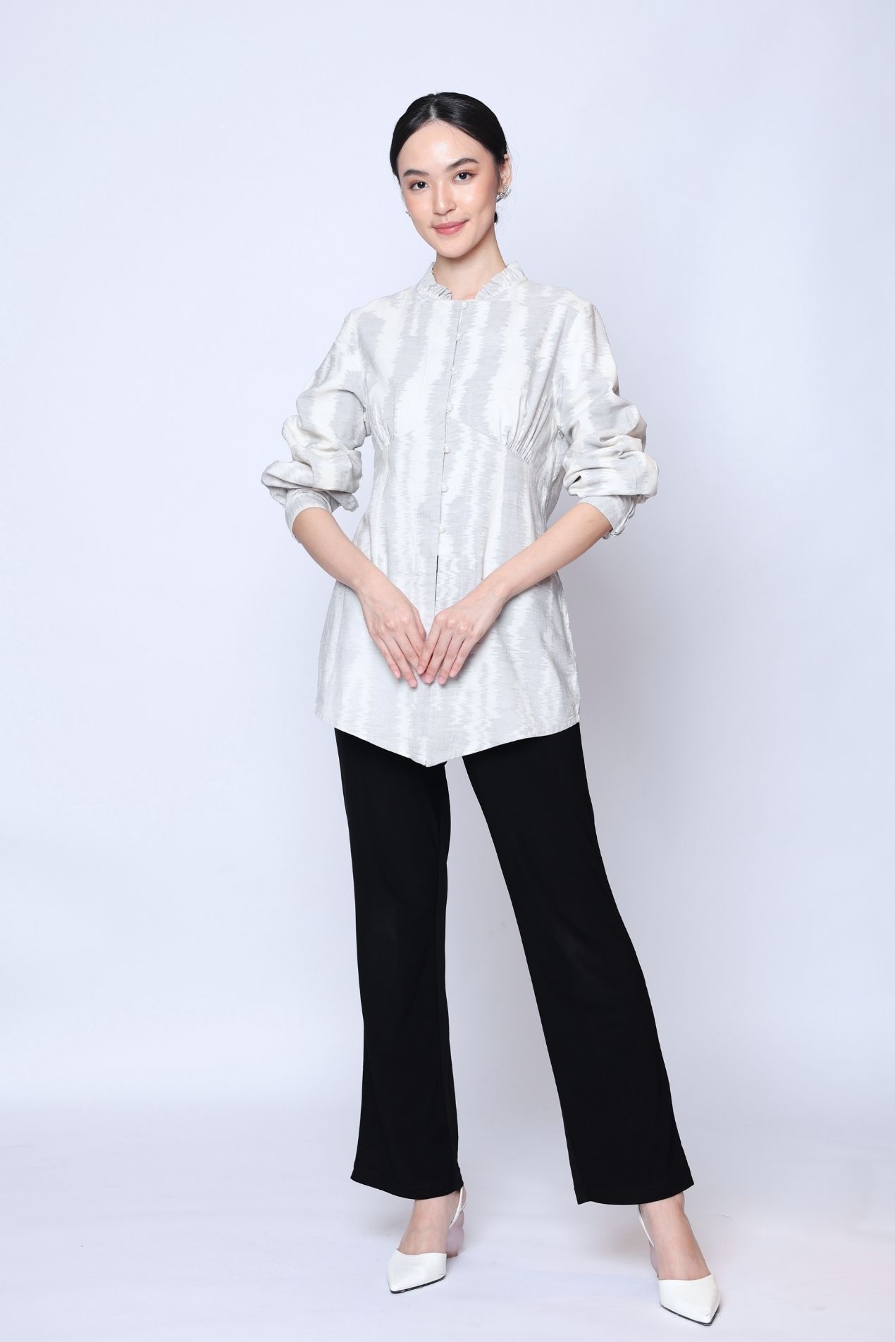 "A timeless expression of elegance and tradition, this kebaya-inspired top is crafted from Jepara’s finest tenun, featuring the distinguished akar motif. The graceful balloon sleeves and refined round neckline create a harmonious blend of heritage and modernity. Designed for effortless versatility, this piece is perfect for celebrating Raya or elevating your everyday moments with poise and tradition. Wear it through every season, embracing each movement with grace."