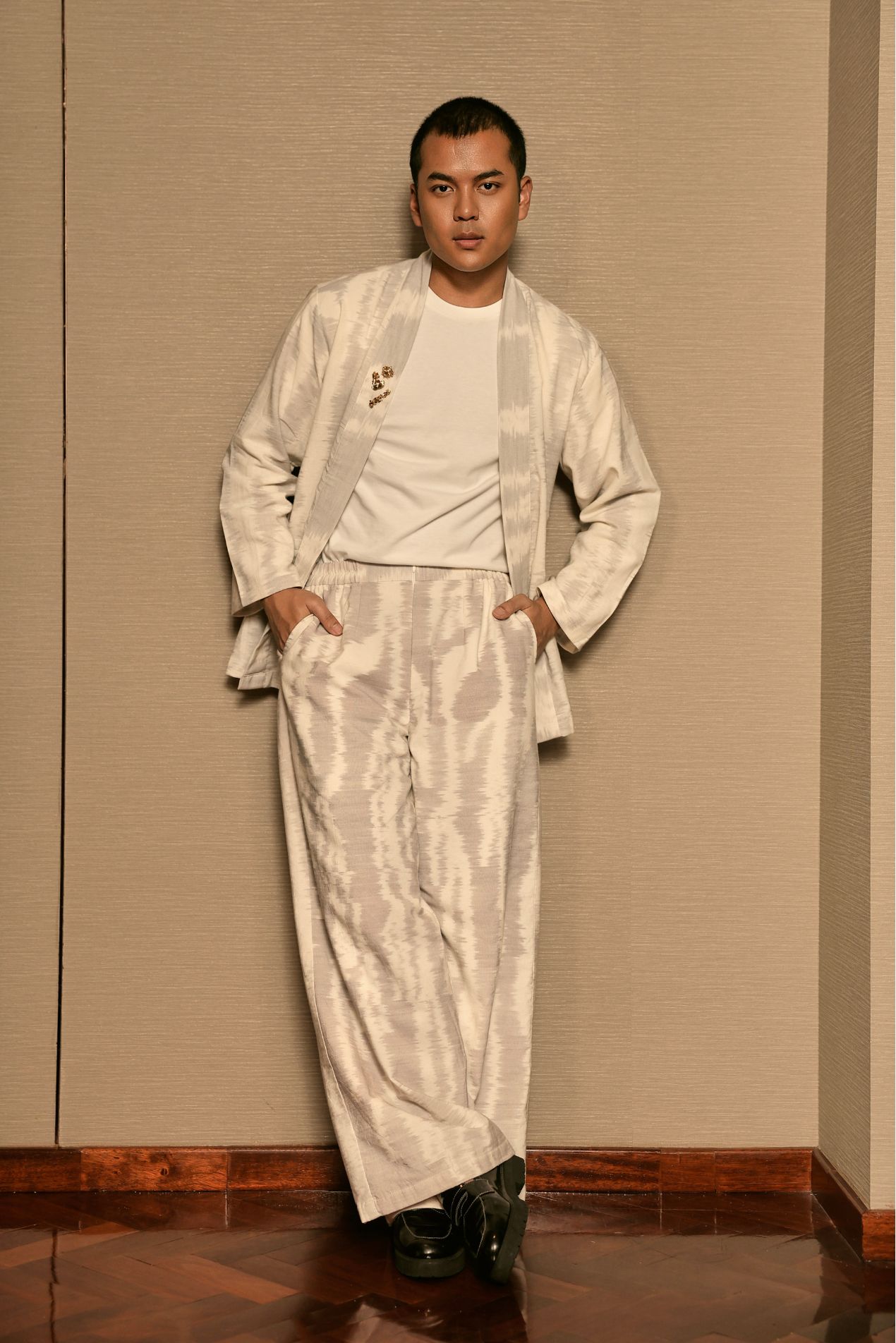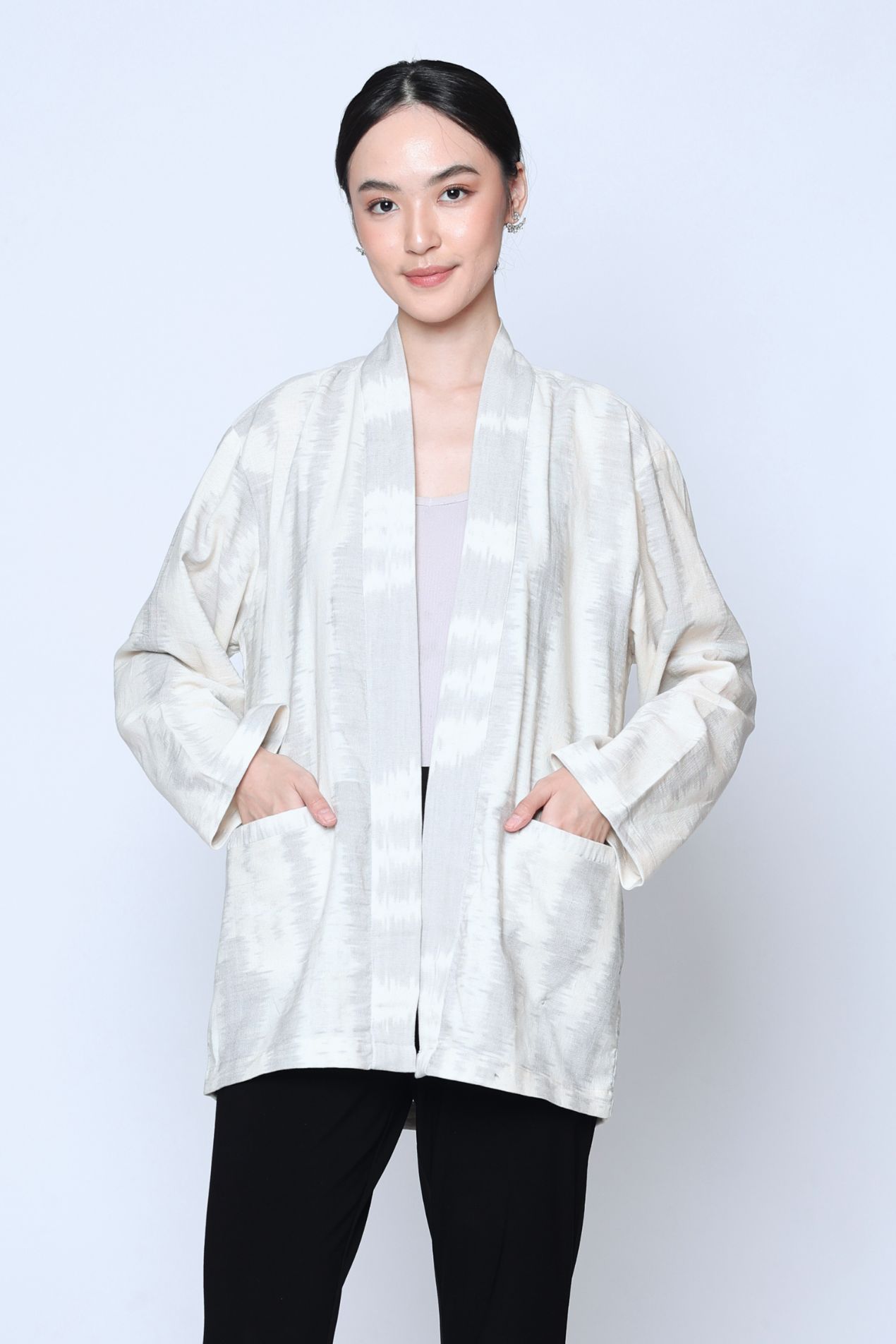 Crafted from Jepara’s finest tenun with the distinguished akar motif, this outer embodies heritage and craftsmanship in every thread.