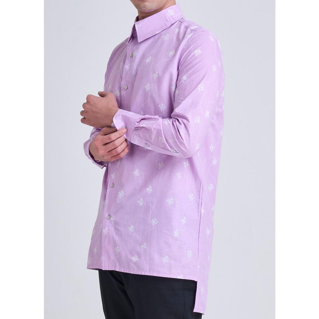 Introducing our first ever Mens collection. A chic and sophisticated long-sleeve button-down shirt, perfect for those who value both fashion and comfort. This shirt features a classic collar, button-down front, and a slightly longer hem for a modern twist. The lilac fabric is beautifully decorated with an intricate and unique batik pattern, ensuring you stand out in any setting.