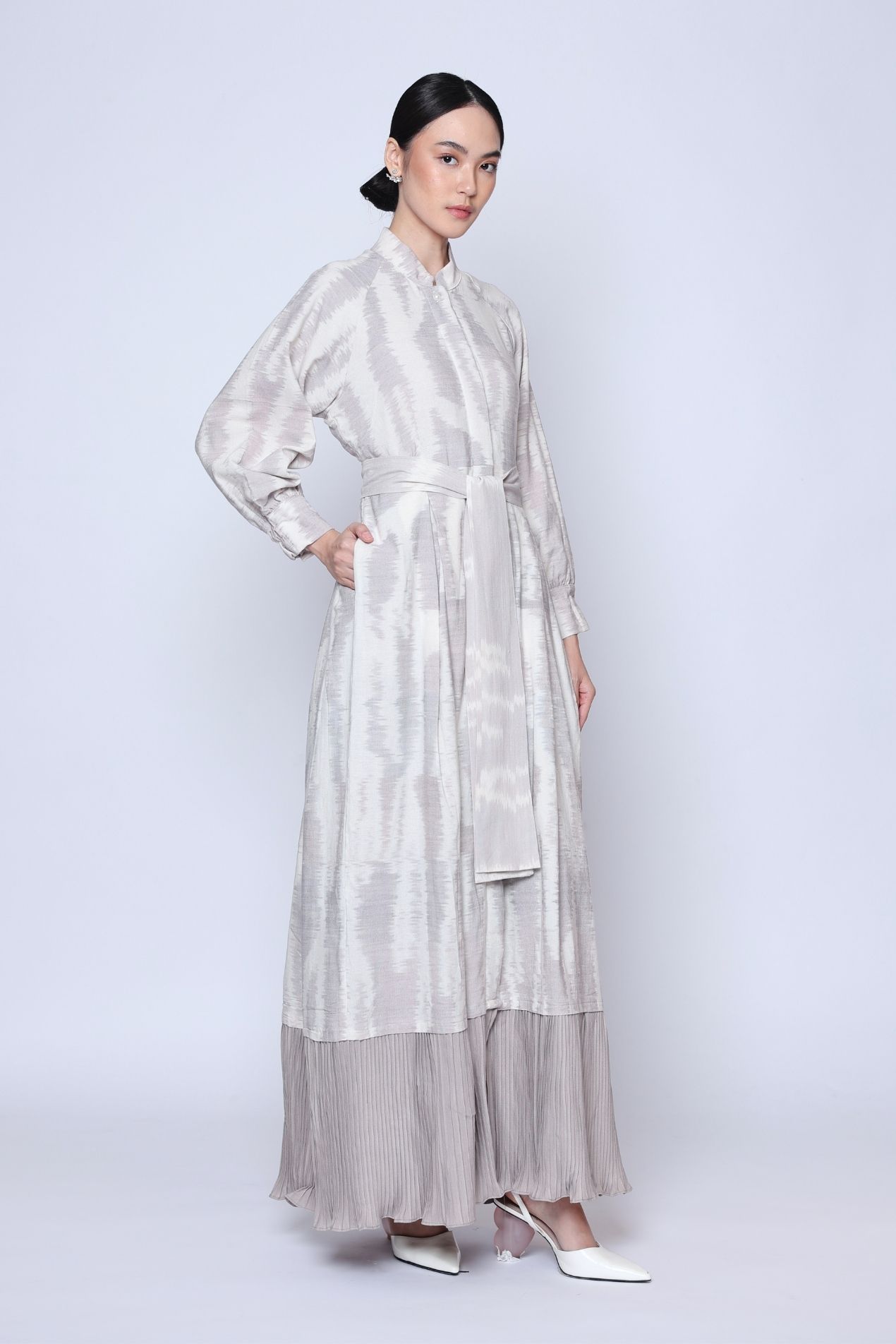 "Designed for effortless elegance, this exquisite piece features sophisticated balloon sleeves and a delicate waist tie that beautifully accentuates your silhouette. Crafted from Jepara’s finest tenun, it is adorned with ruffled pleats along the hem, adding graceful movement to every step. A perfect balance of tradition and modern refinement, this timeless design makes an elegant statement for your Raya celebration."