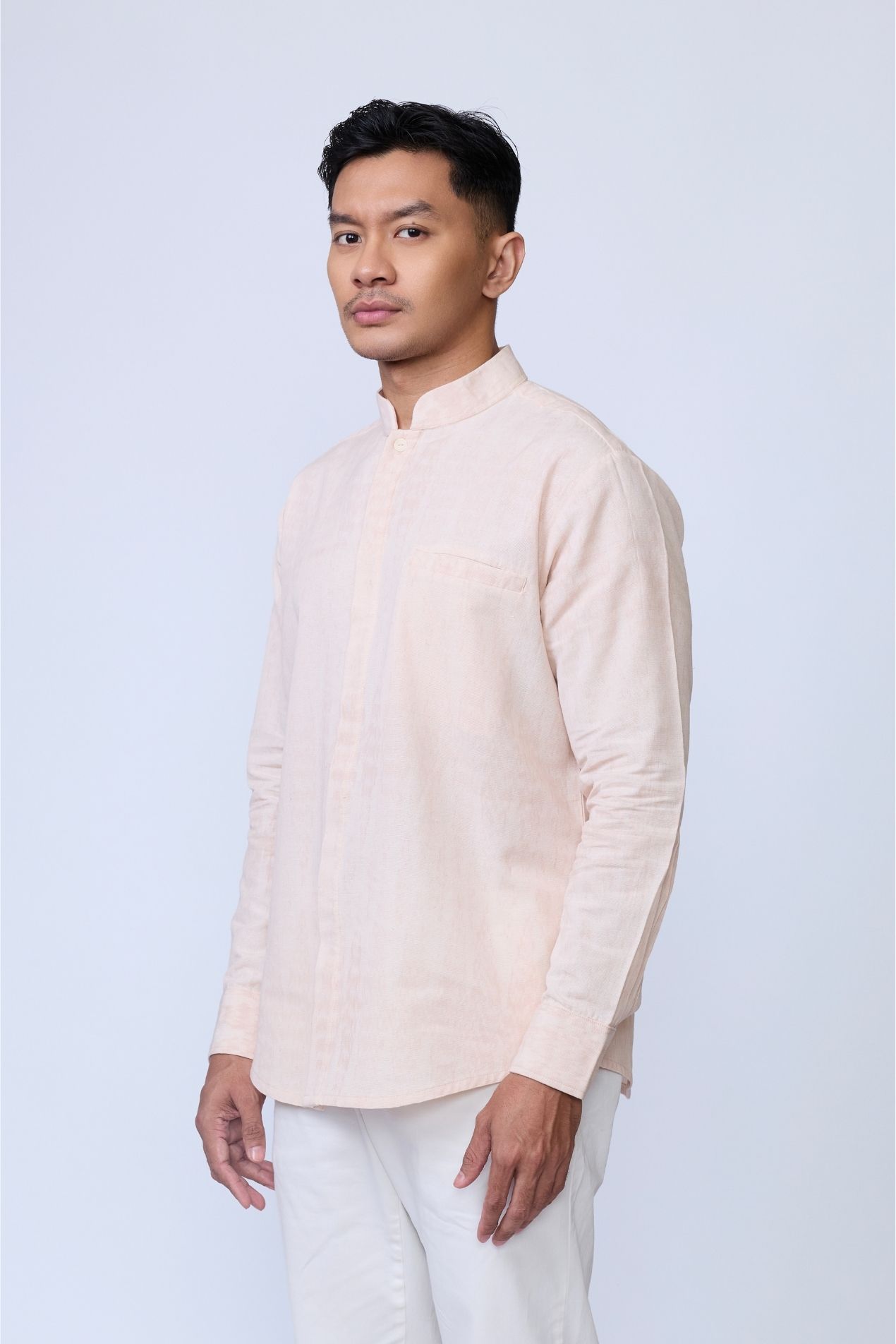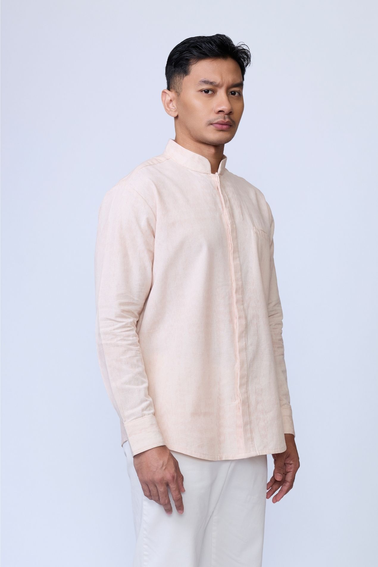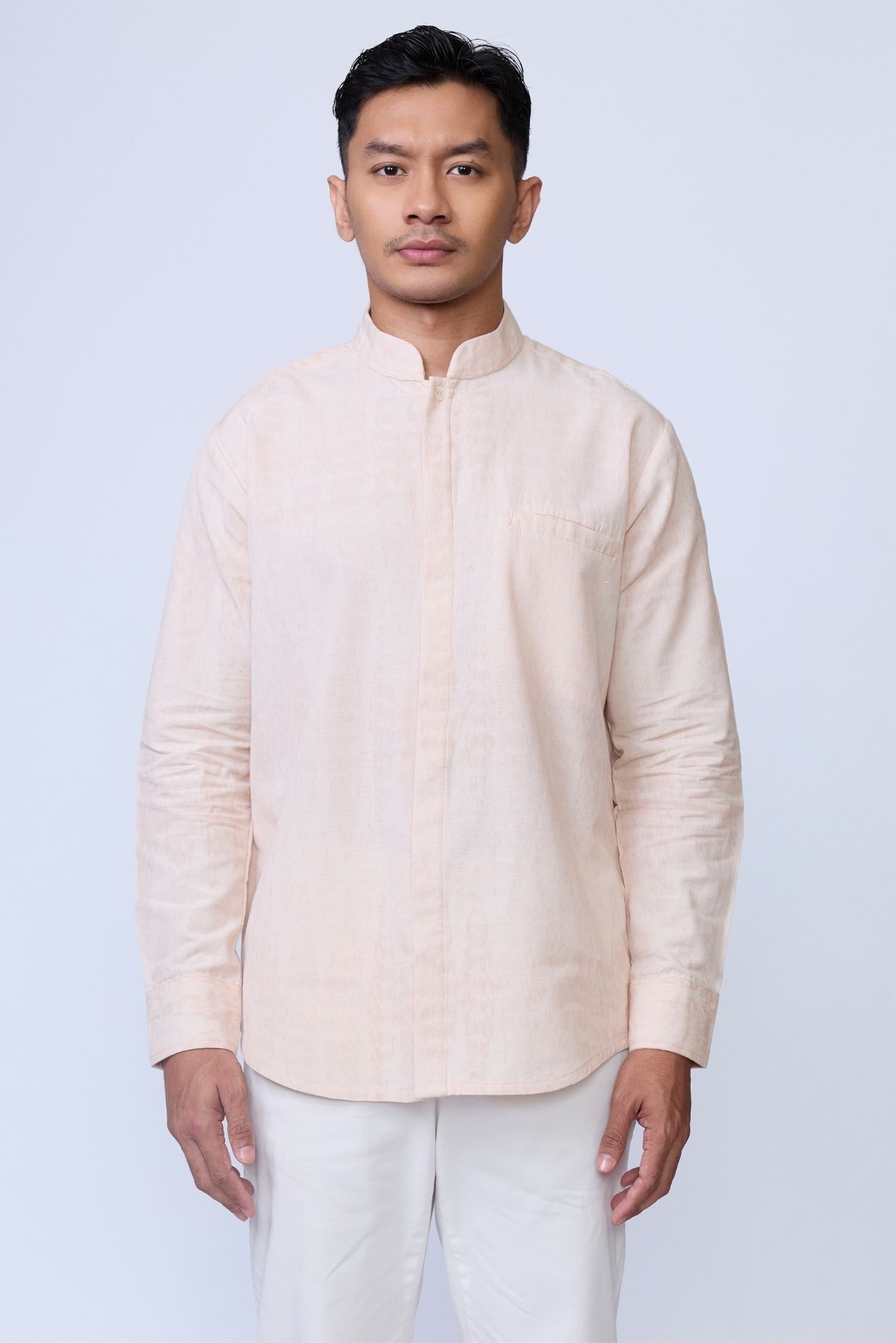 The best-selling Baku silhouette returns in this pink shirt, a refined expression of OE’s menswear identity. Defined by its classic kerah koko neckline, an essential in traditional Raya dressing. This long-sleeve design delivers a clean, polished silhouette while staying rooted in cultural heritage. Crafted from Tenun Jepara and specially made for the Raya 2026 collection, this piece celebrates every layer of you, bold, soulful, and uniquely yours.