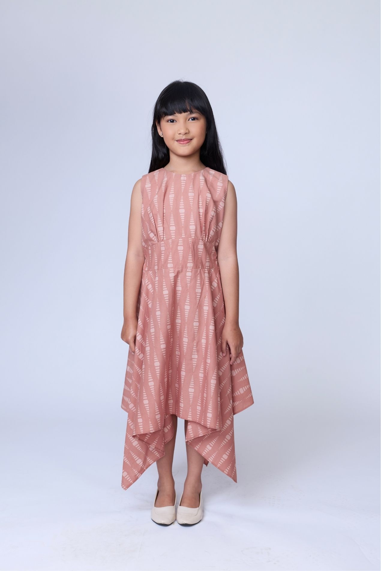 Introducing our newest kidswear drop, a sleeveless dress with an asymmetrical silhouette that allows for effortless movement and endless wear. Finished with subtle gathered front details for an easy, front-access style, it brings comfort and freedom together in one dress.