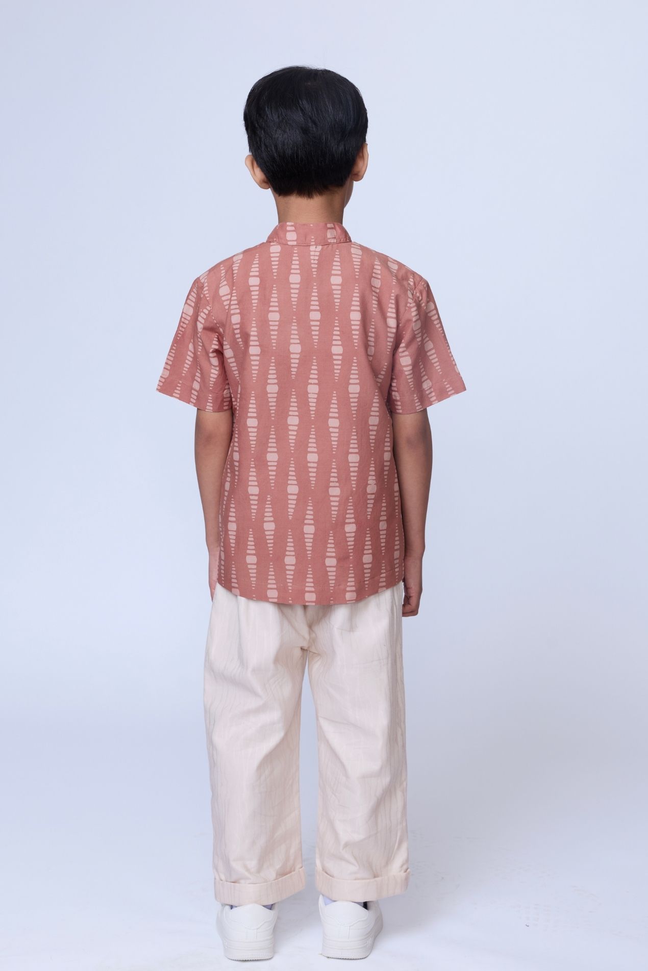 Introducing our newest kidswear drop, a pink everyday short-sleeve shirt for kids. Designed with a layered front lapel detail for added style, it features a loose, relaxed silhouette that allows for comfortable movement throughout the day.