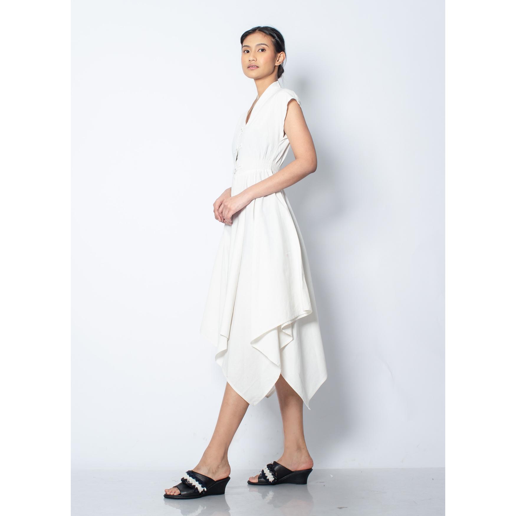 Asymmetrical dress with v-neckline, cheongsam buttons, and hour-glass shape. Very lady like and gives your feminine feel. Handcrafted from Tenun Indonesia. For stylish look, pair it with sneakers, or switch it up with heels for special occasions.