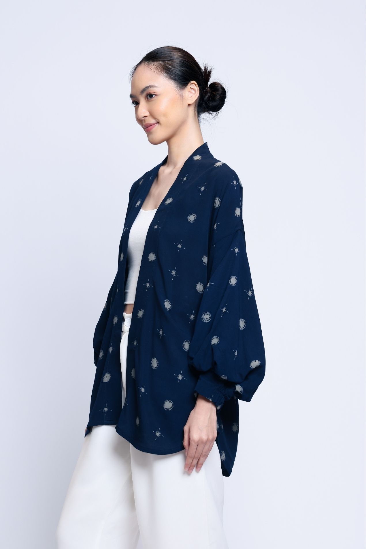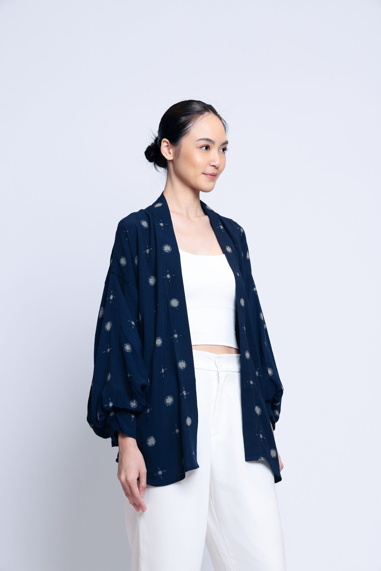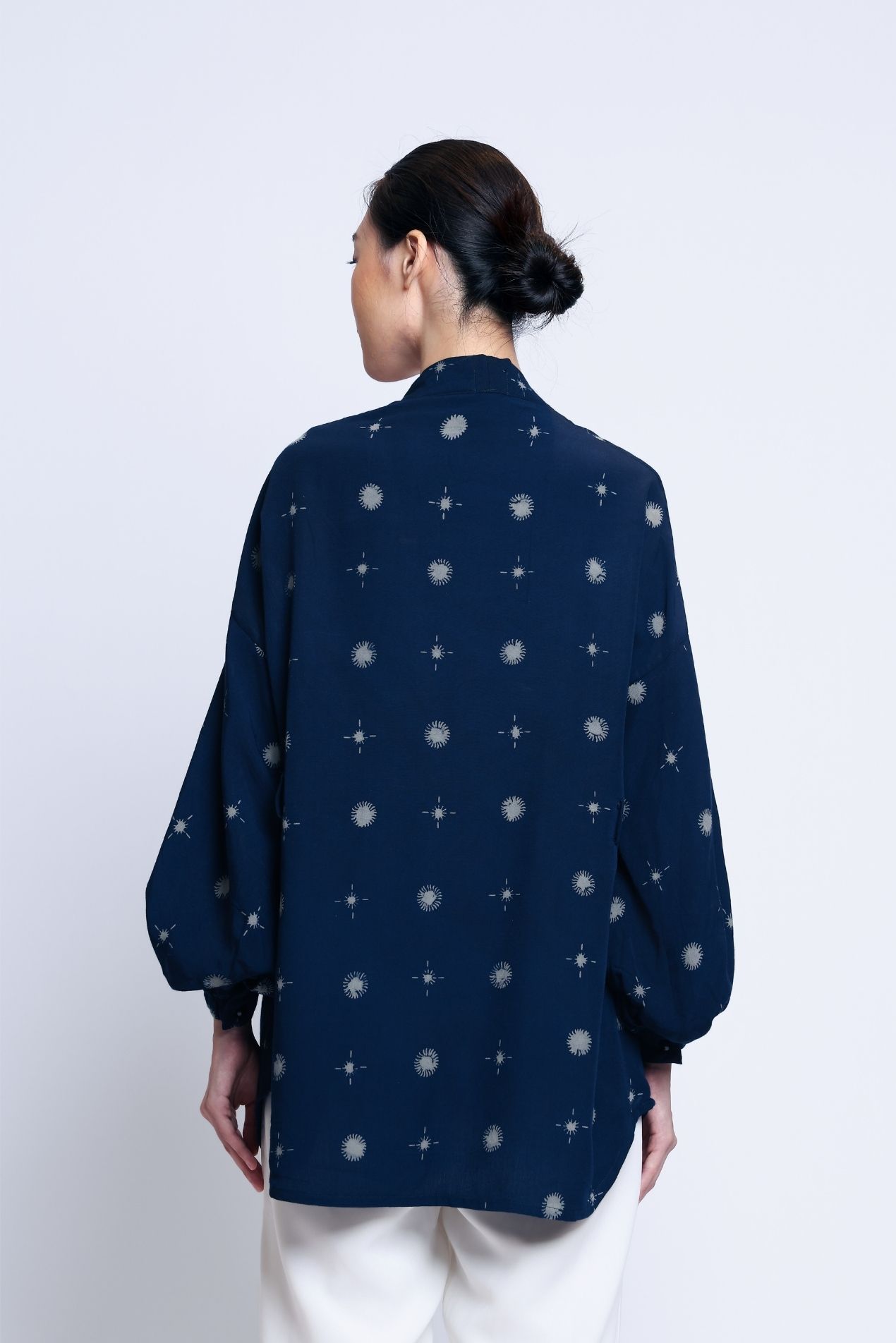 Made from breathable, airy rayon that feels soft and cool on the skin. Featuring stamped batik from Pekalongan, this piece carries a pattern exclusively designed by OE for the Summer 2025 collection, inspired by the graceful form of sunrays. A versatile staple for sun-drenched days, gallery strolls, and easy rooftop evenings."