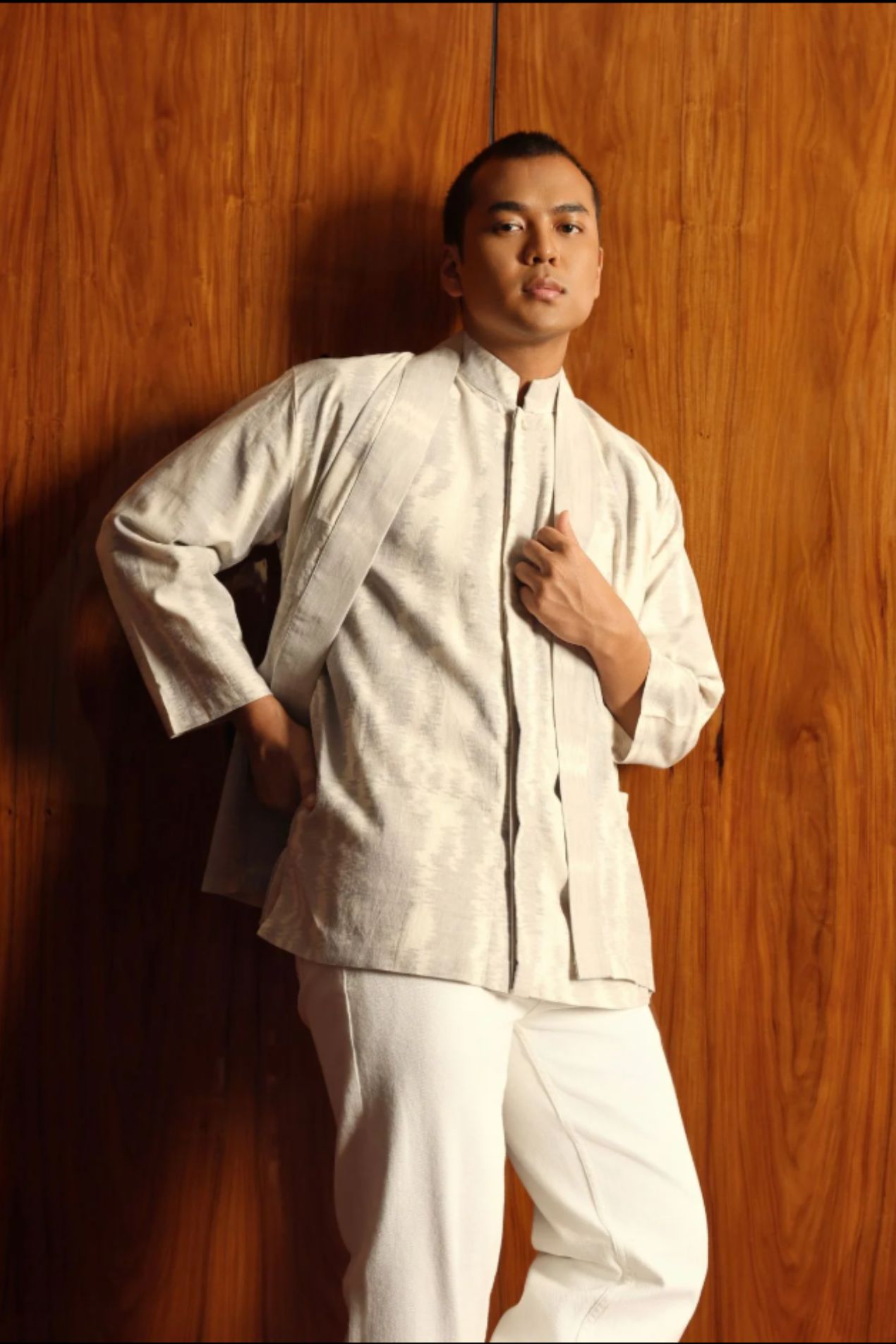 Crafted from Jepara’s finest tenun with the distinguished akar motif, its full-length sleeves, functional front pockets, and elegant side slits ensure both sophistication and ease of movement. Perfect for celebrating Raya or elevating everyday wear, this shirt seamlessly blends comfort, tradition, and timeless style."